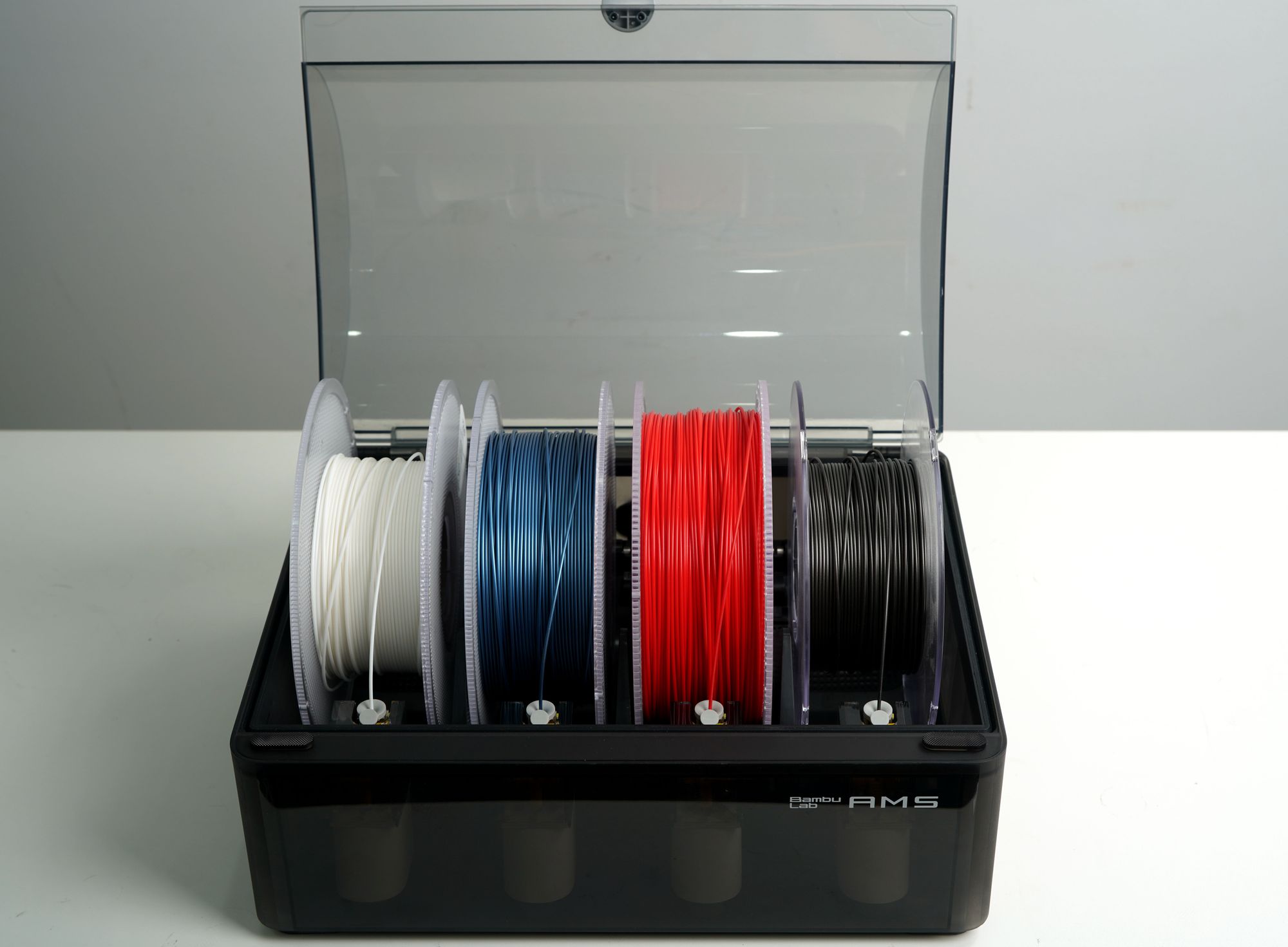 No. With the carefully designed airtight structure, we do not need a drier in the AMS. When I say carefully designed, I mean the box, the tube and the connector on AMS, printer and anything in between. We have two slots in the AMS which can hold two bags of desiccant, which keep the system dry for a very long time. When the desiccant is used up, the humidity sensor will warn you to replace it.