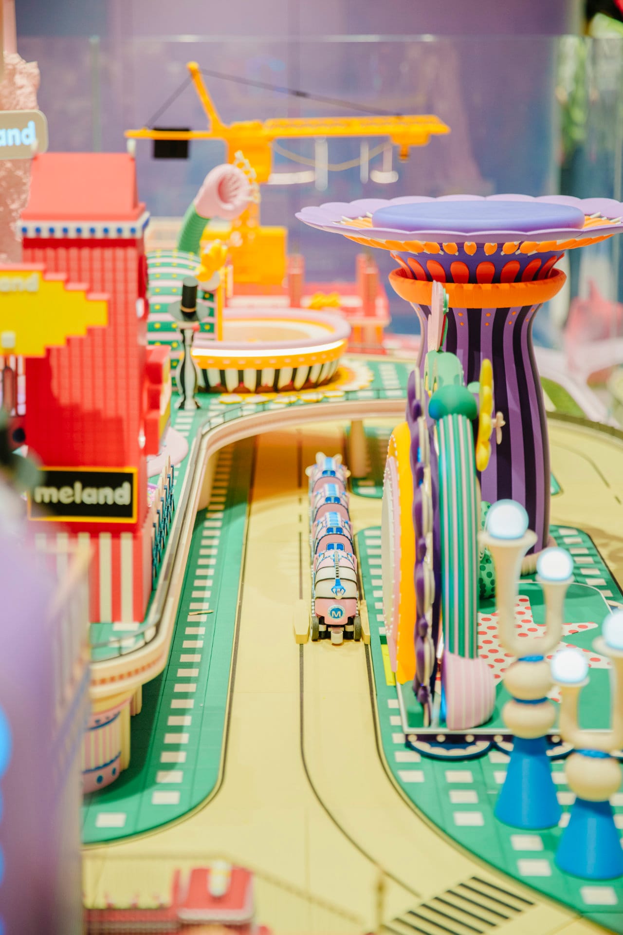 The design team created a miniature city in which the central elements are iconic attractions from meland playgrounds. Streets, buildings, and playground structures are all 3D printed and designed with a child encountering the installation for the first time in mind.
