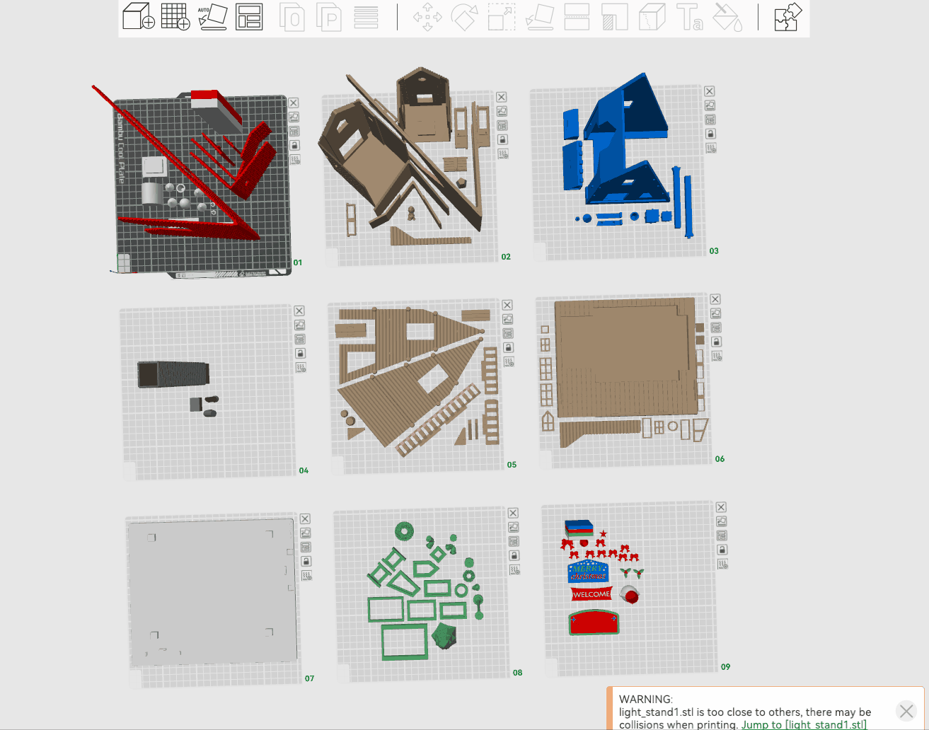 This seasonal model has 113 parts, and by default prints in 6 colors that lay down on 9 separate plates. Once upon a time, a project of such scale demanded a certain amount of courage to start preparing and slicing, let alone print it. Now, with Bambu Lab's hardware and software, you can finish the print within two days and customize the colors to your liking. You can even customize the text and the logo!