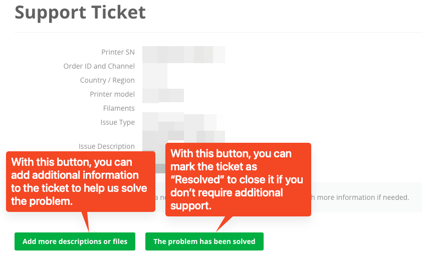 To add additional information to a ticket you have already submitted, simply add a description to the original ticket, and we will respond as soon as possible after receiving it. Kindly refrain from opening duplicate tickets for the same issue, as this can introduce additional delays in addressing your problem.