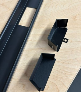 3D-printed caps for aluminum Vblocks protect the parts and avoid scratches/damage.