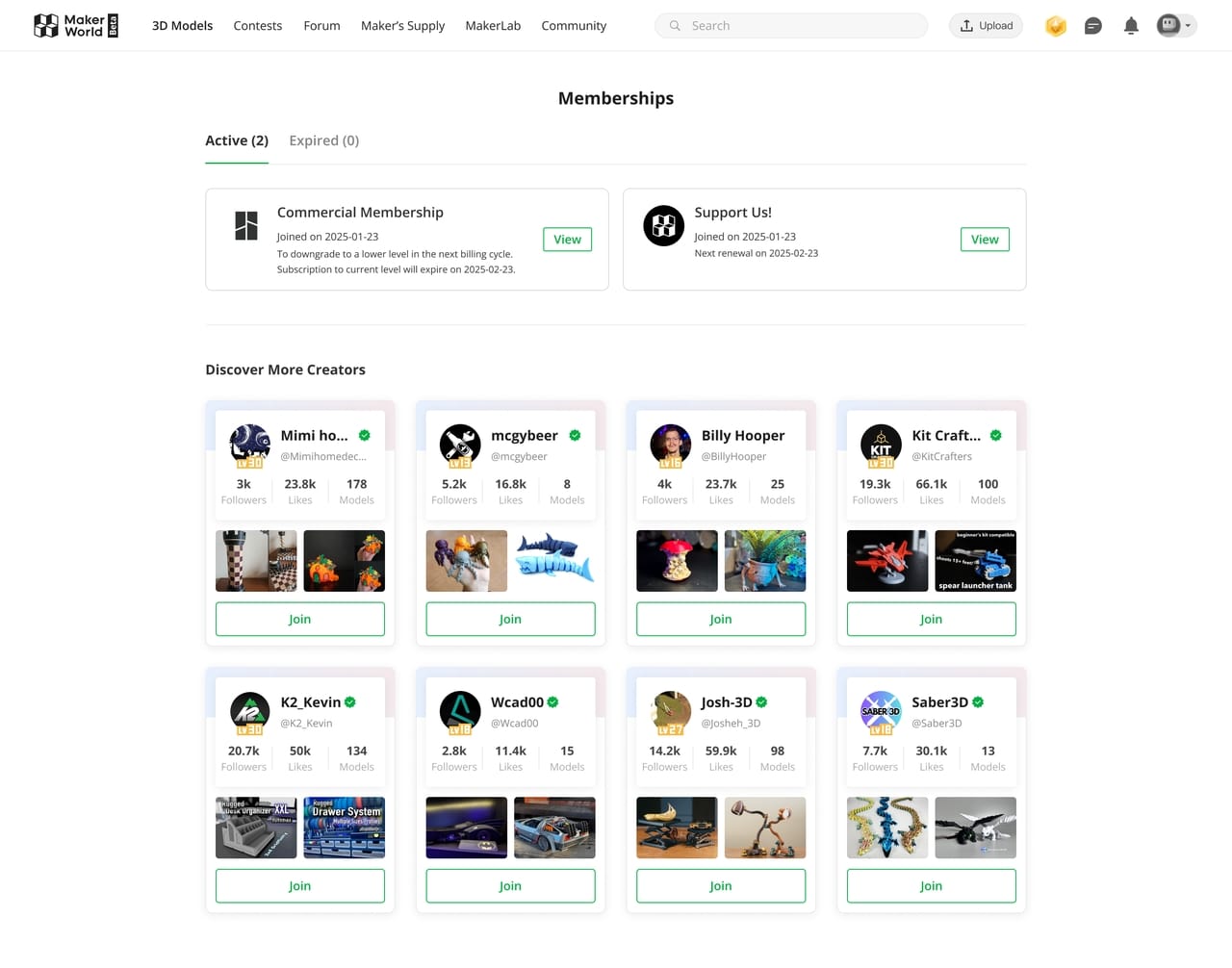 To ensure quality and prevent abuse, creators wanting to set up commercial memberships need at least 200 followers and 600 prints, with no rule violations in the past 90 days (except for incorrect reports). Well-established creators from other platforms can contact models@makerworld.com to receive an invitation to our program.