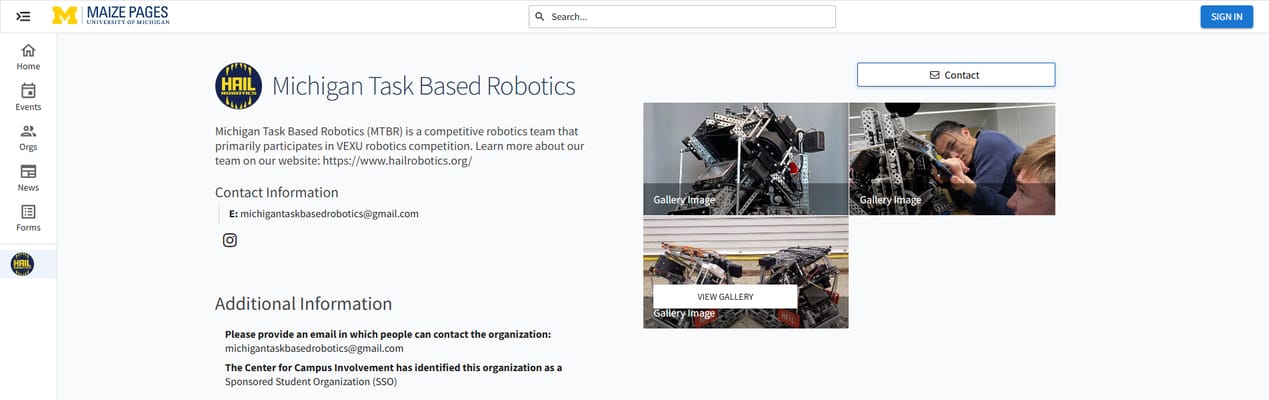 Michigan Task-Based Robotics is a 53-member, student-run organization at the University of Michigan that designs and builds competitive VEX robotics systems.