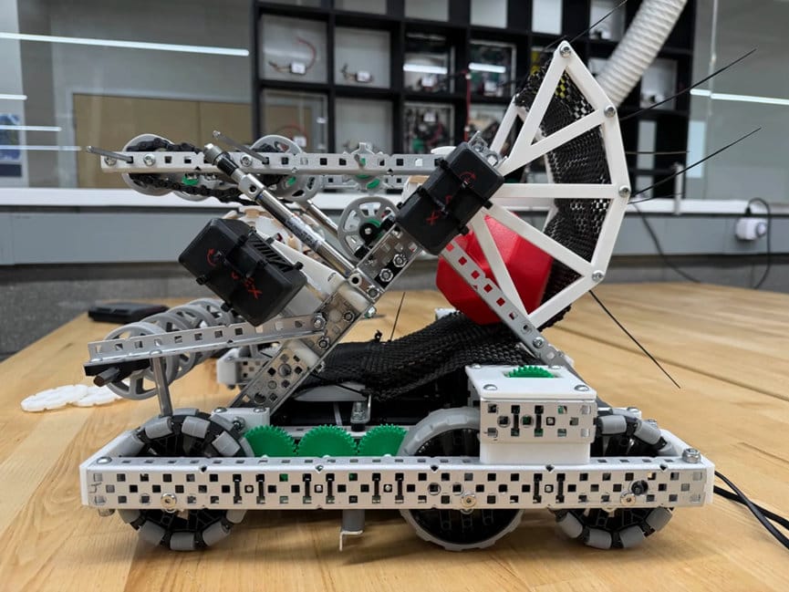 The team primarily uses standard PLA for early prototyping to ensure dimensional accuracy and repeatability. For final components, PLA-CF is used to achieve improved strength while maintaining low weight. This material strategy enables designs that would be difficult or impractical using traditional metal manufacturing, expanding what the team can build within competition constraints.