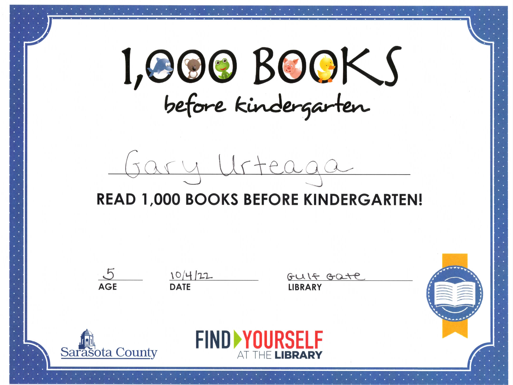 Gary was selected for Ashton Elementary's REACH 1st Grade class, an advanced program for high-achieving and self-motivated students.