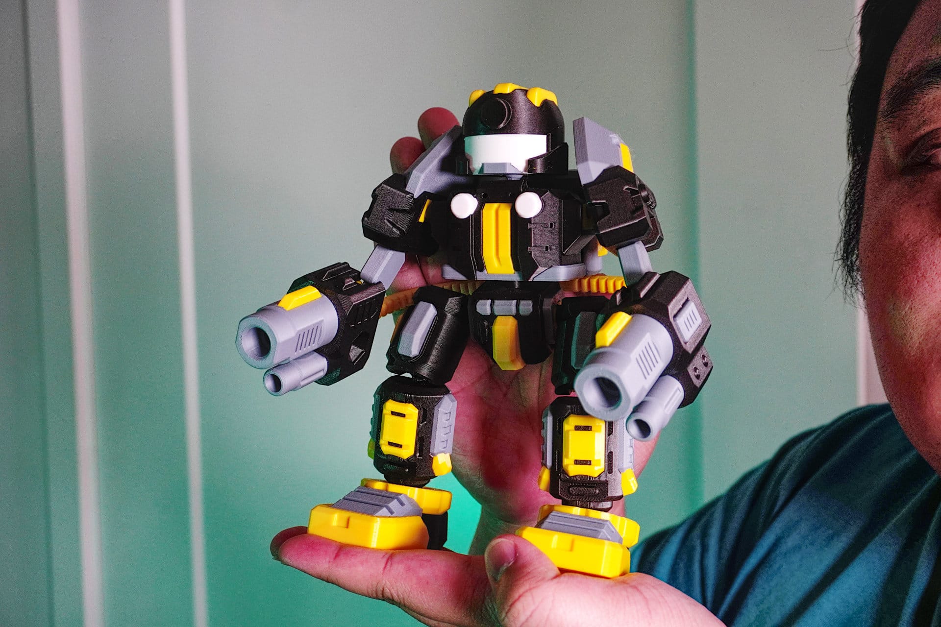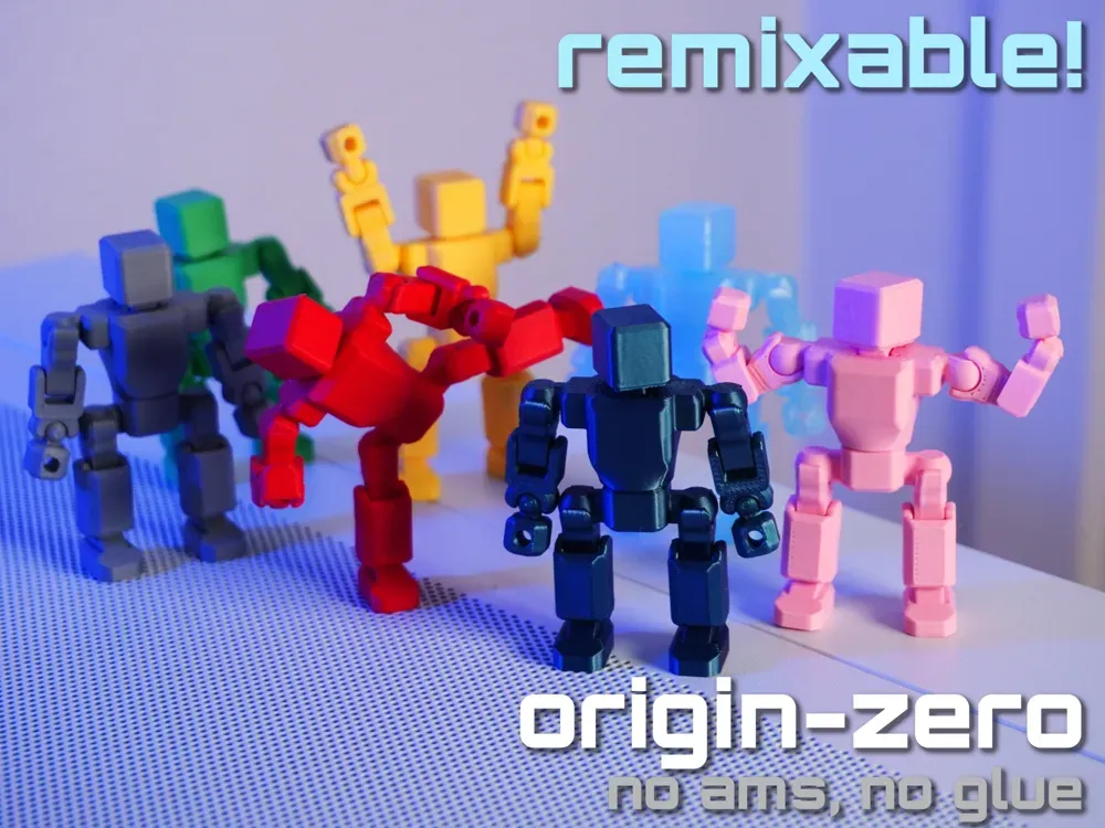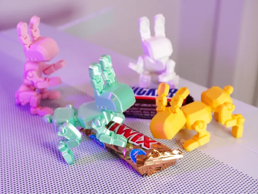 The color choices are deliberate too. Mickey uses PLA almost exclusively, because it has the most color options and it's what most people have. He's avoided PETG because he prefers matte finishes and PETG's shine doesn't suit the look he's after. He's been experimenting with TPU for joints, because it bonds reasonably well with PLA and gives the moving parts in his designs a better feel.