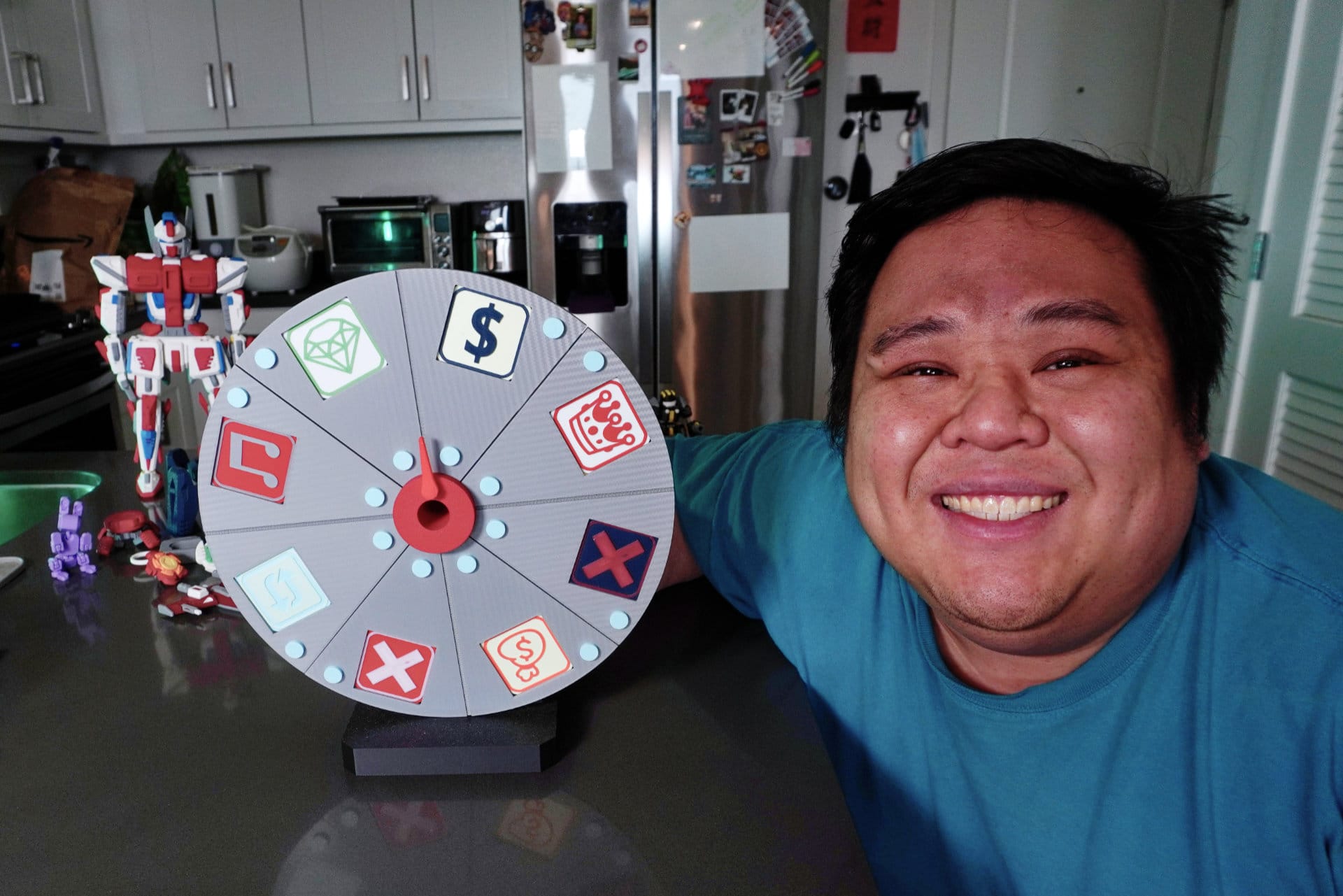On MakerWorld, he goes by Kit Crafters. If you've spent any time browsing the platform, you've almost certainly come across his work. The modular robots with their interlocking joints. The fidget clicker. The dragon model that became his first crowdfunding project. The flamethrower microphone - a personal favorite, even if the numbers don't reflect it.