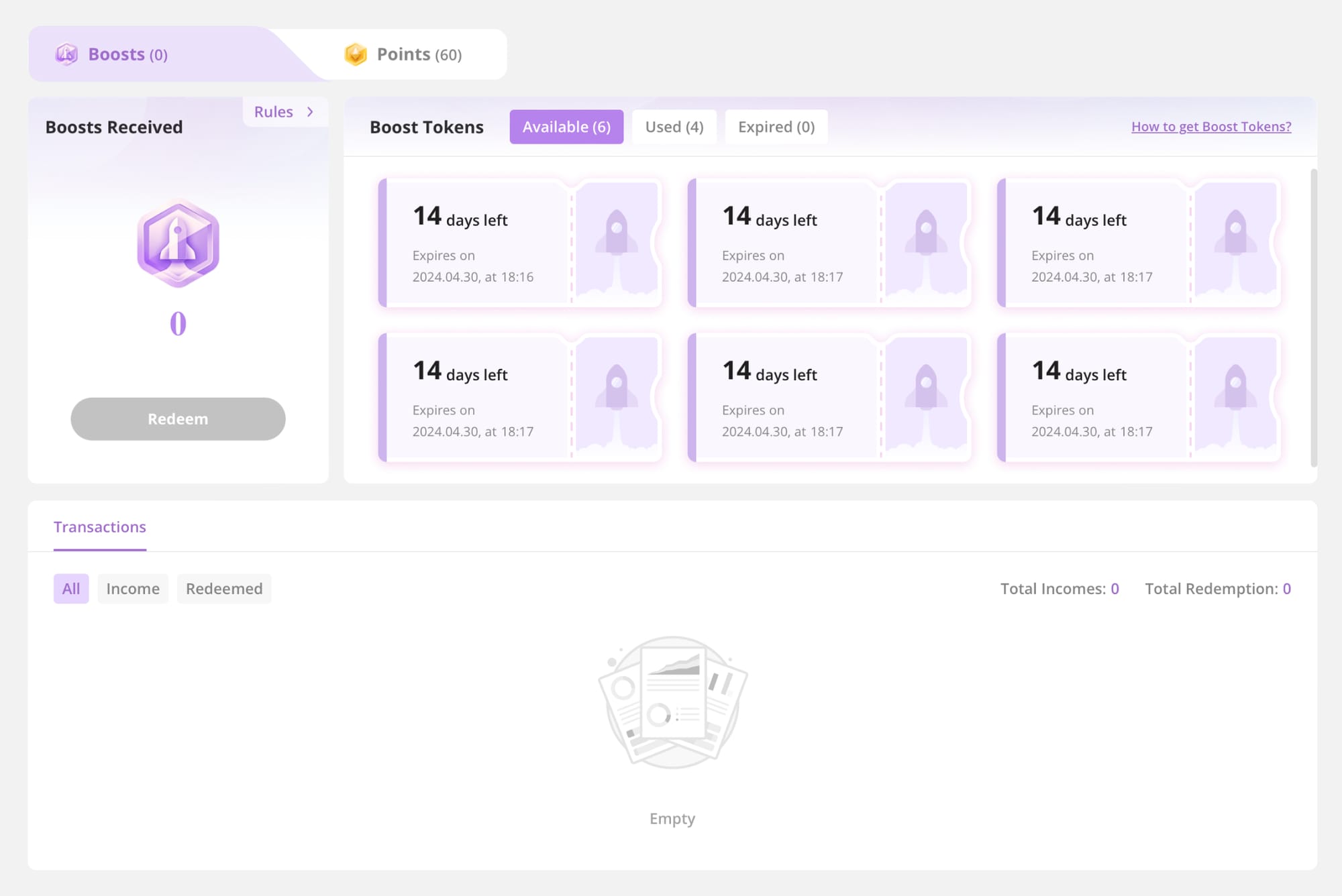- Each user can receive up to one boost token per week, which will expire in two weeks.