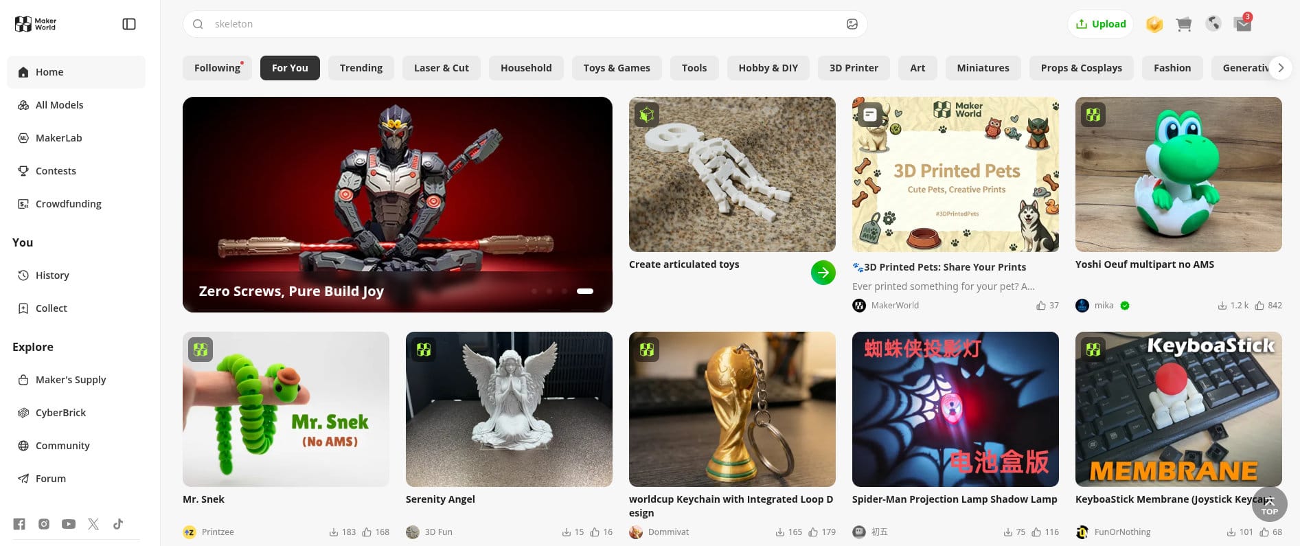 Most 3D printing journeys start with a question: where do I find something worth printing? MakerWorld answers it. Currently the most popular and fastest-growing free platform for 3D printable models in the world, it features an exclusive group of designers whose work you won't find anywhere else.