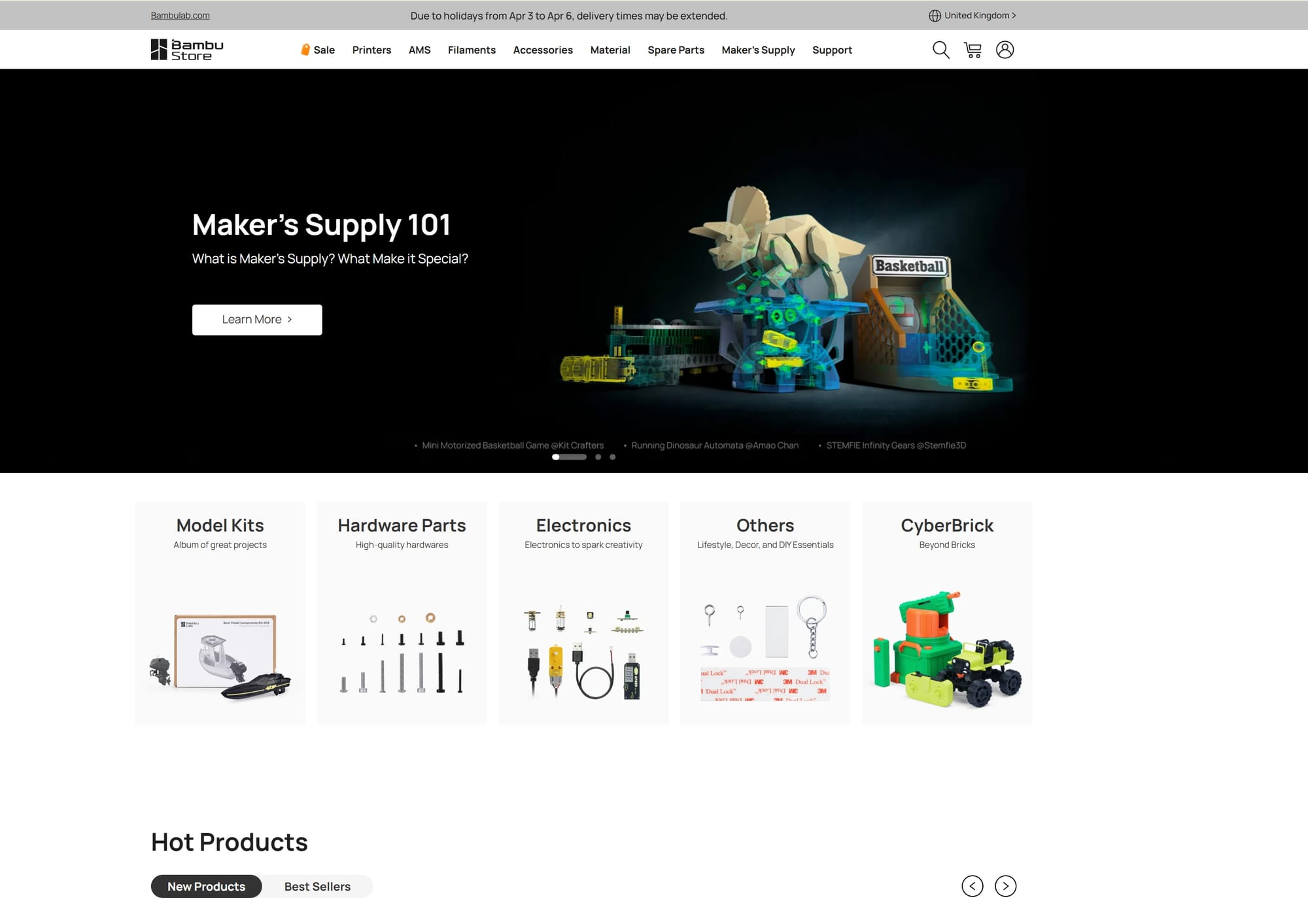 Maker's Supply closes the gap that users previously had to solve on their own. It is a single place where you can find electronics and accessories needed to bring printed models to life - from vehicles to robots and home devices. No more searching across multiple stores or wondering whether the components you ordered will fit.
