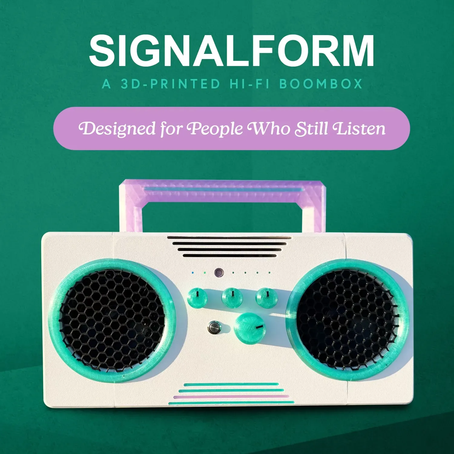 But Eric did not stop there. Once again drawing on his own life story, he decided to create another project - the SignalForm, a 3D printed boombox project.