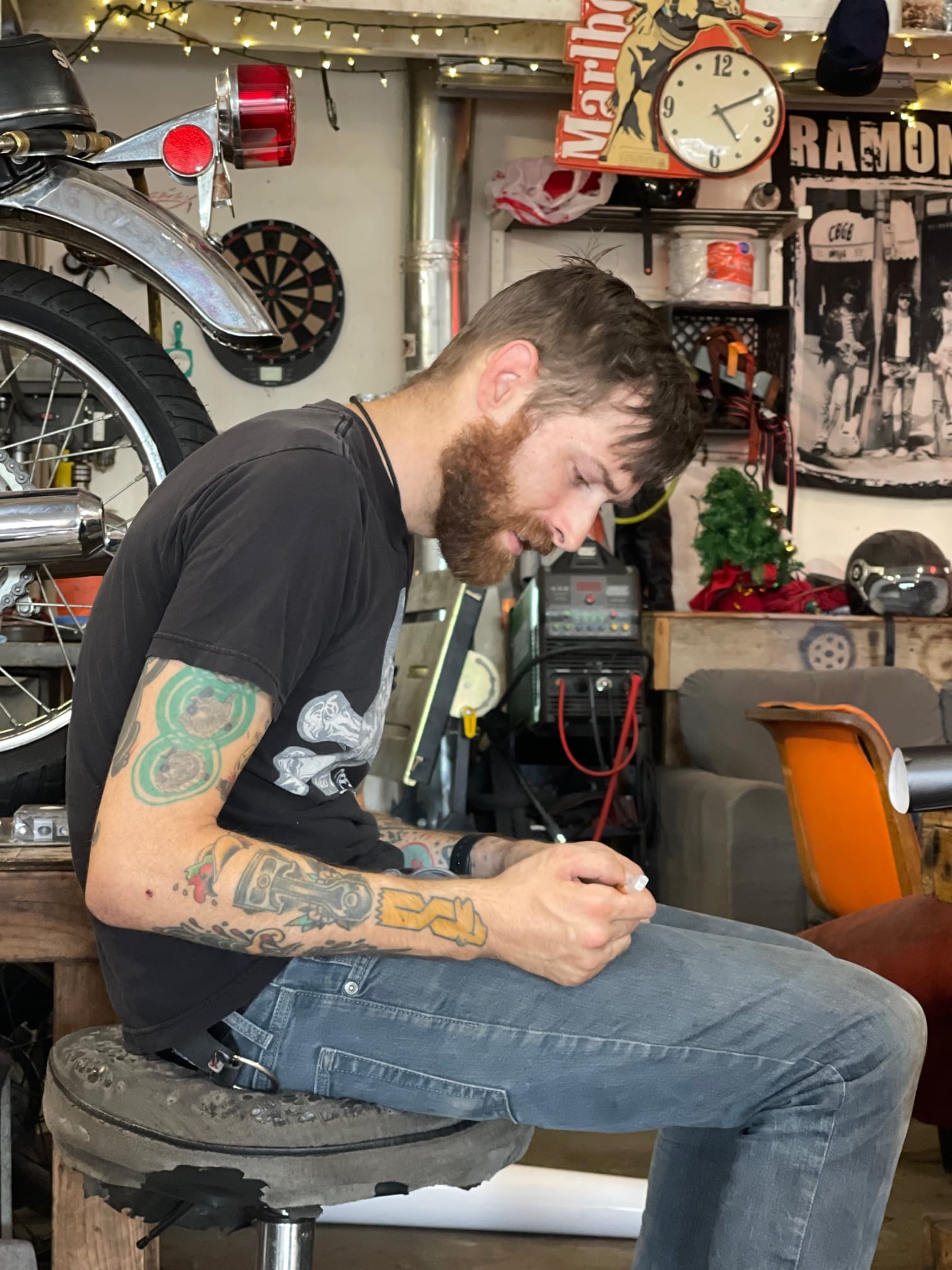 At some point, motorcycles appeared in his life. First as a means of transportation, then as a passion for development. Eric learned welding, metalworking, TIG welding, built and modified machines for tuning. At the same time, he raced flat track.