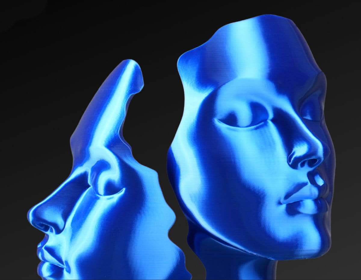 The main nozzle prints the model while the auxiliary nozzle prints the support - using a different material, chosen so it releases cleanly. Instead of tools and brute force to remove supports, a gentle pull is all it takes.